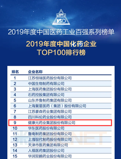 实力超群! 人生就是搏入选“2019年度中国化药企业TOP100排行榜”Top9